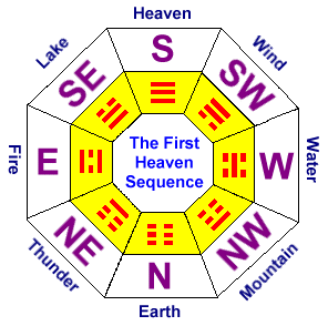 This trigram arrangement is `picture perfect' in that the opposite trigram shows a relationship to each other. So you have: Heaven to Earth; Wind to Thunder; Water to Fire; Mountain to Lake.