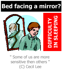 6.5 Imagine, from young, if your room has a TV set. And in your own privacy of your room, you truly enjoy the entertainment. But do we have to listen to a geomancer or a family member who had consulted a geomancer that a TV set is a no no? What would be our life like afterwards? If the argument is that the screen of a TV set is like a mirror. But think again, many of the screens are tinted and some of the latest screens are plasma or LCD screens with little reflection. As a *joke*,  some say that when we sleep, our spirit may be shocked to see itself in the mirror. But it could be the reverse! The spirit may like to look at itself before living the body!